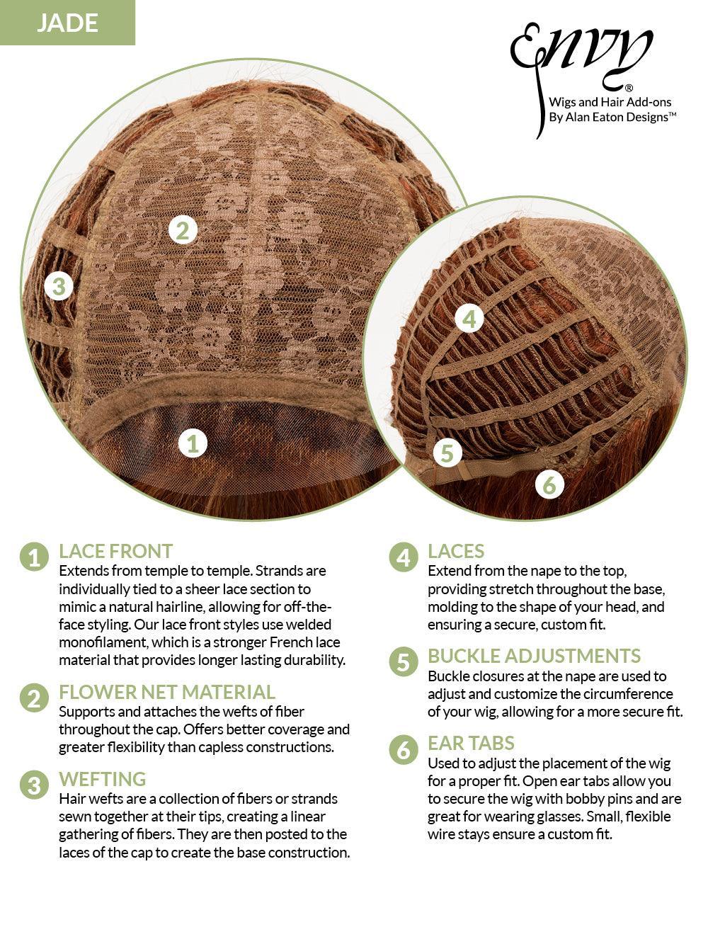 JADE by ENVY features a Hand-Tied Lace Front construction that creates true-to-life movement and an invisible hairline. (And its soft, voluminous curls make the most of them!) With 25 vibrant, multi-dimensional shades to choose from, JADE is sure to be your go-to for glam!