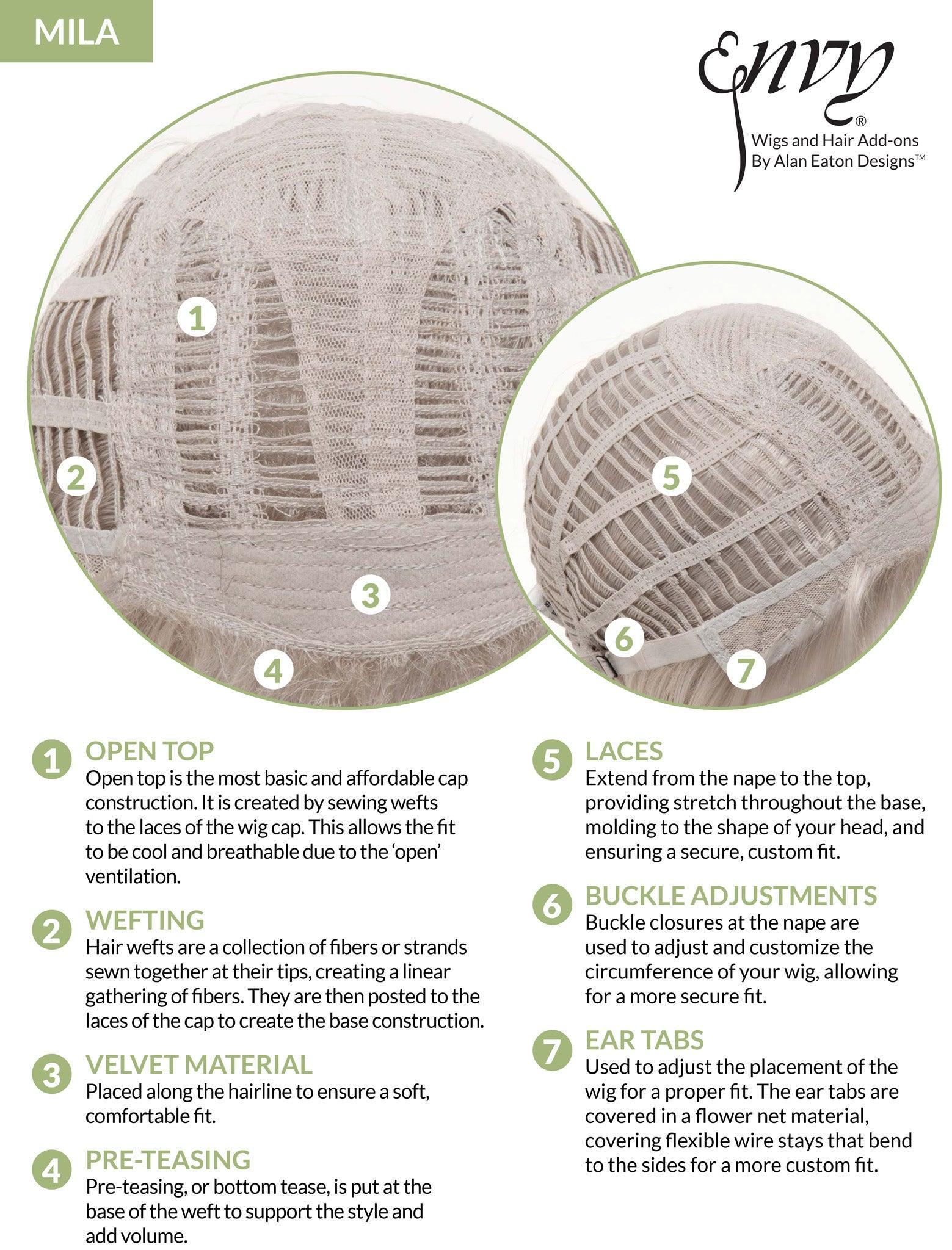 MILA by ENVY is a lovely, shoulder-length shag with face-framing pieces that compliment any age and face shape. Dramatic layering gives this look lots of movement and volume, while our Open Top construction keeps things lightweight and comfortable.